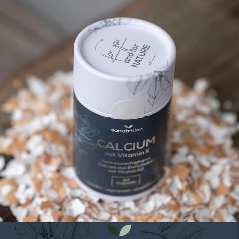 Bei Calcium mit Vitamin K2 Kapseln von Sanutrition bekommst du Calcium aus zwei bewährten Quellen: aus natürlicher Eierschale und aus Calciumcitrat. Die Eierschale liefert nicht nur Calcium in konzentrierter Form, sondern auch wertvolle Spurenelemente wie Magnesium und Strontium. Calciumcitrat ergänzt die Rezeptur durch seine gute Verträglichkeit und Bioverfügbarkeit. Auf diese Weise verbindet die Kombination die Vorteile einer natürlichen Herkunft mit einer modernen, organischen Calciumverbindung. Unterstützt wird das Duo durch Vitamin K2 in der hochwertigen MK-7-Variante. Vitamin K ergänzt die Wirkung, indem es zu einer normalen Blutgerinnung beiträgt und ebenfalls die Erhaltung normaler Knochen unterstützt.
