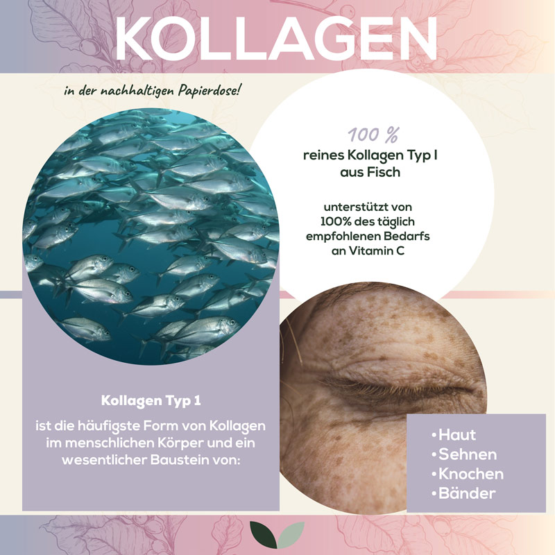 Was auch immer dein Typ ist: Kollagen Typ 1 ist die häufigste Form von Kollagen im menschlichen Körper und ein wesentlicher Baustein von Haut, Sehnen, Knochen und Bändern. Es ist besonders wichtig für die Elastizität und Festigkeit der Haut. Das von uns verwendete marine Kollagen aus Fisch wird vom Körper besonders gut aufgenommen und verwertet. Wir haben zusätzlich auch ein geschmacksneutrales Rindercollagen Pulver in unserem Sortiment, falls du doch lieber etwas Typ I & III bevorzugst.