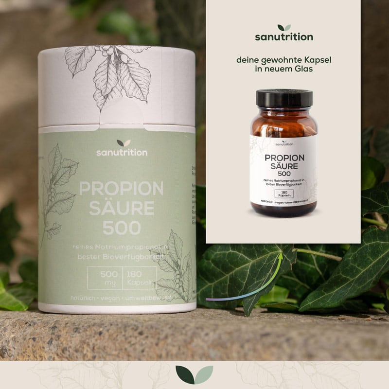 Du erhältst unsere Propionsäure Kapseln in dem lichtgeschützten und wiederverwendbaren Braunglas.